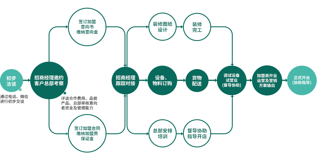 公司總部下設店鋪督導,一年365天,天天巡回在各地代理區(qū)域,協助各地投資者進行渠道擴充、店鋪管理,提高經營水平,提升業(yè)績